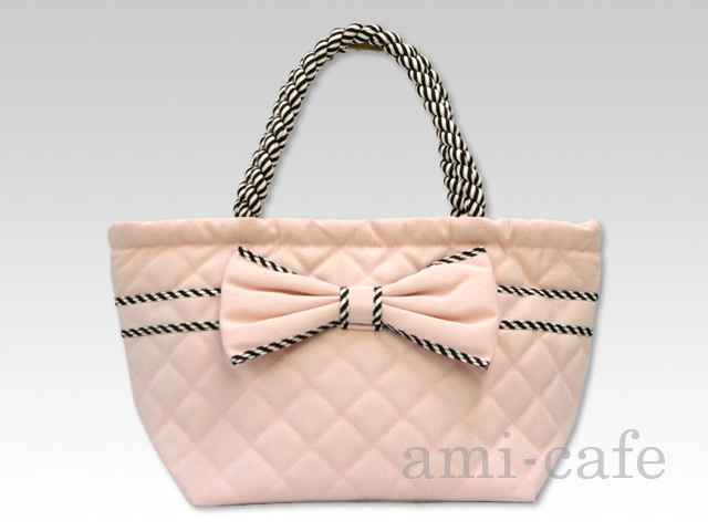 NaRaYa(ナラヤ) キャンバスリボンバッグ 舟形ミニトート ピュアピンク×ストライプ